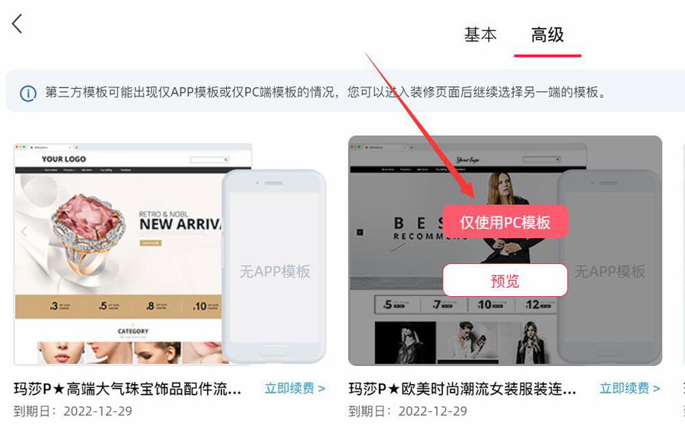 温馨提示 APP端和PC端不是同一个模板 需要另外购买