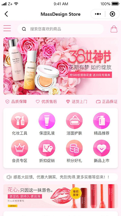 全部 女装服装 男装服装 鞋靴鞋帽 美妆护肤 户外运动 珠宝饰品 食品茶饮 母婴亲子 日用百货 手机数码 生鲜果蔬 蛋糕烘培 酒店旅游 家居建材 本地生活 医疗健康 分类页 其他行业 积分商城 美妆套装 零售商超 商家案例 设计案例